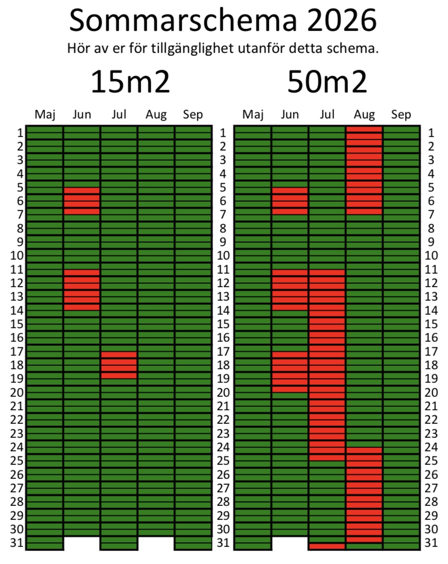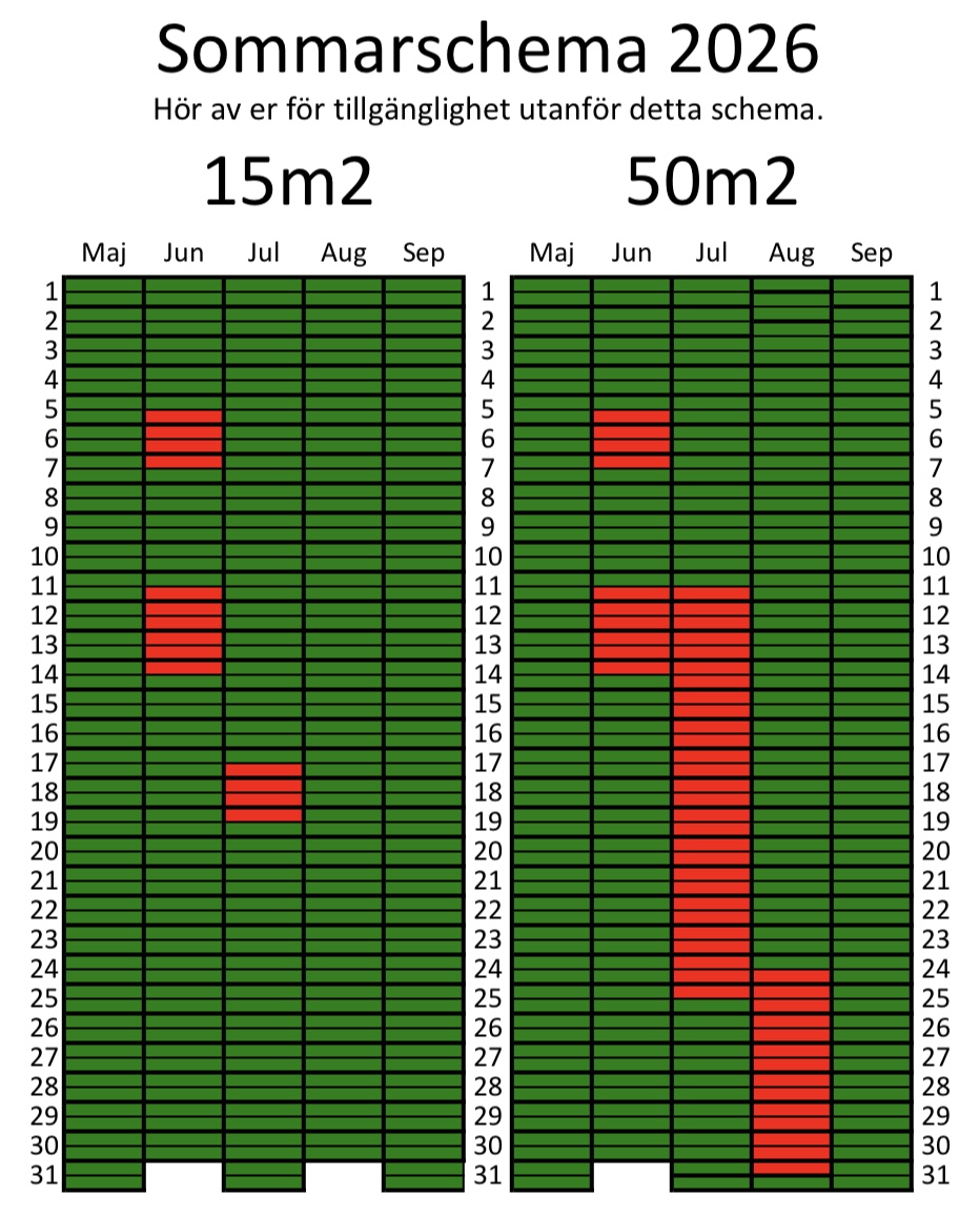 Sep-maj finns möjlighet för kortare och längre hyrperioder till specialpris. Hör av er vid intresse.