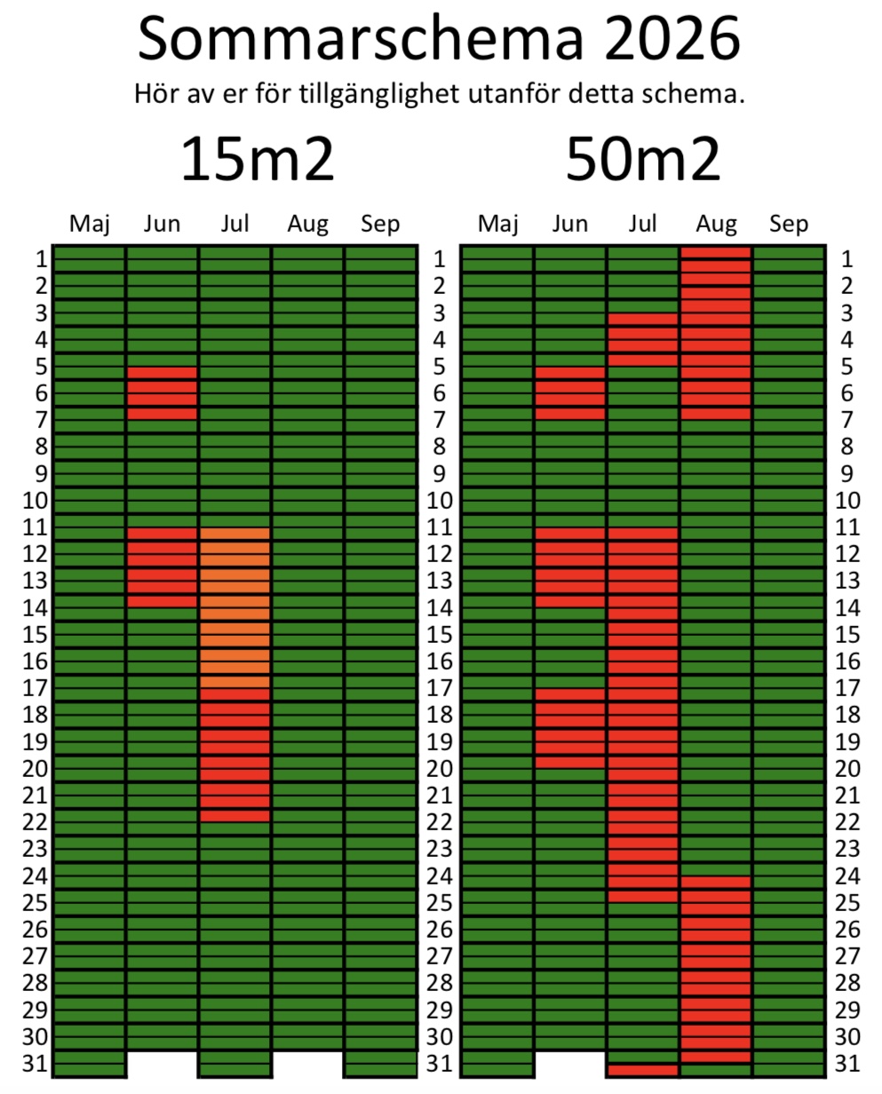 Sep-maj finns möjlighet för kortare och längre hyrperioder till specialpris. Hör av er vid intresse.